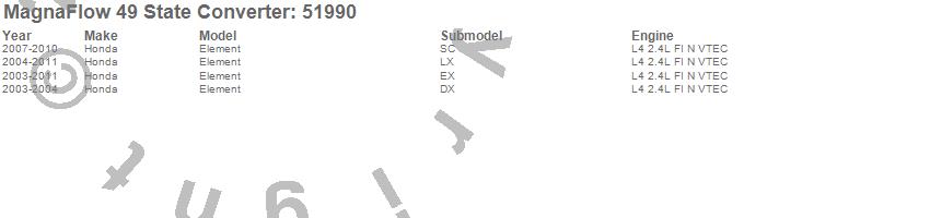 Below is an abreviated list of applications for the Direct Fit Catalytic Converter.