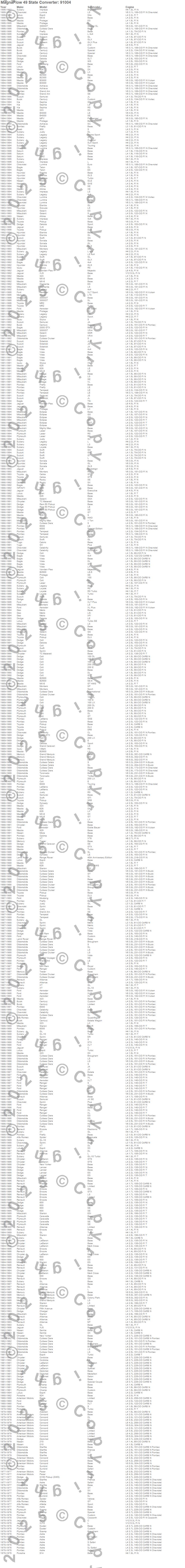 Below is an abreviated list of applications for the 91000 Series OBDII Compliant Universal Catalytic Converter.