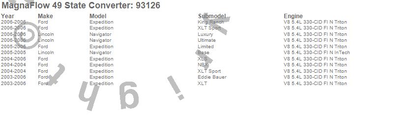 Below is an abreviated list of applications for the 93000 Series Direct Fit Catalytic Converter.