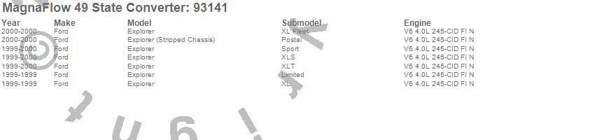 Below is an abreviated list of applications for the 93000 Series Direct Fit Catalytic Converter.