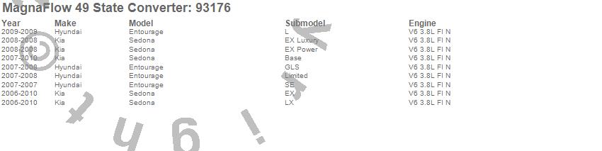 Below is an abreviated list of applications for the 93000 Series Direct Fit Catalytic Converter.
