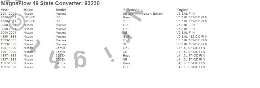 Below is an abreviated list of applications for the 93000 Series OBDII Compliant Direct Fit Catalytic Converter.