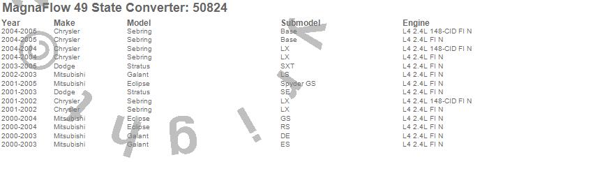 Below is an abreviated list of applications for the Direct Fit Catalytic Converter.