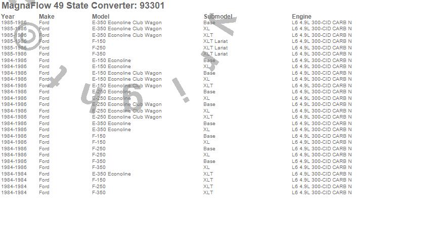 Below is an abreviated list of applications for the 93000 Series OBDII Compliant Direct Fit Catalytic Converter.