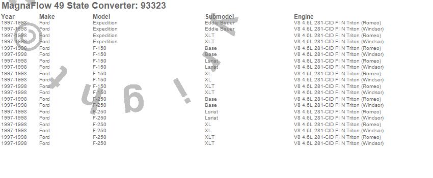Below is an abreviated list of applications for the 93000 Series OBDII Compliant Direct Fit Catalytic Converter.