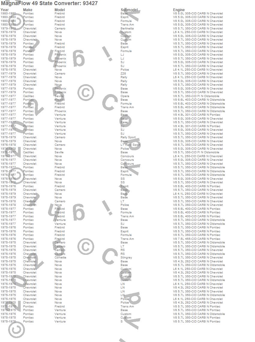 Below is an abreviated list of applications for the 93000 Series OBDII Compliant Direct Fit Catalytic Converter.
