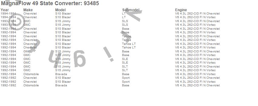 Below is an abreviated list of applications for the Direct Fit Catalytic Converter.