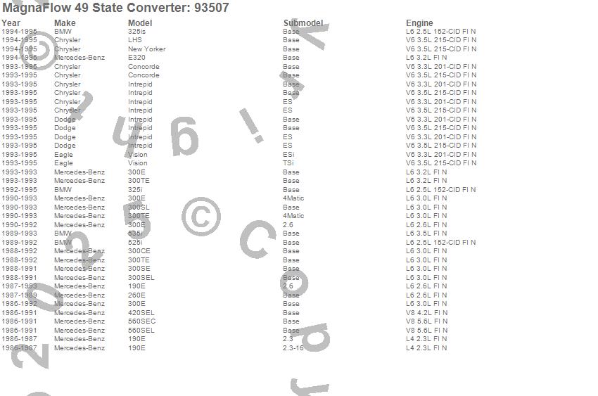 Below is an abreviated list of applications for the 93500 Series OBDII Compliant Universal Catalytic Converter.