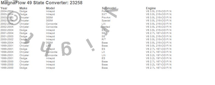 Below is an abreviated list of applications for the Direct Fit Catalytic Converter.