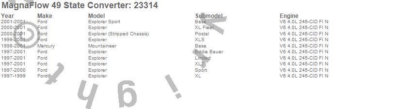 Below is an abreviated list of applications for the Direct Fit Catalytic Converter.