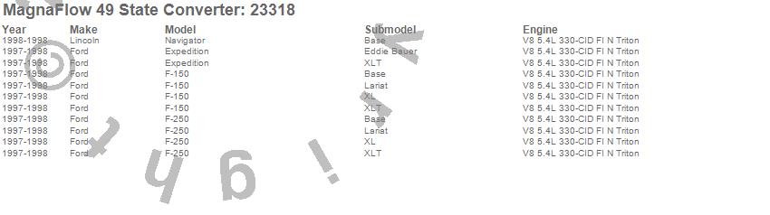 Below is an abreviated list of applications for the Direct Fit Catalytic Converter.