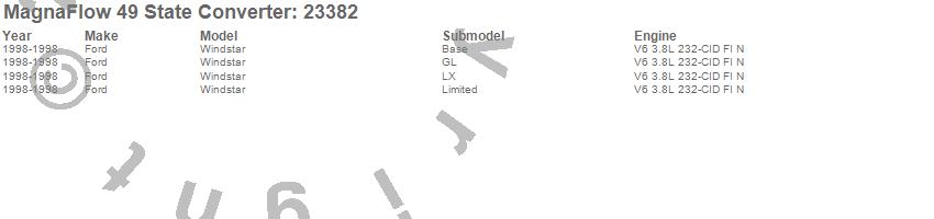 Below is an abreviated list of applications for the Direct Fit Catalytic Converter.