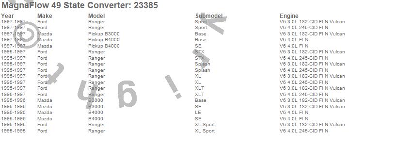 Below is an abreviated list of applications for the Direct Fit Catalytic Converter.