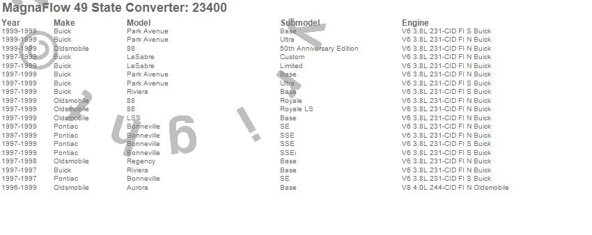 Below is an abreviated list of applications for the Direct Fit Catalytic Converter.