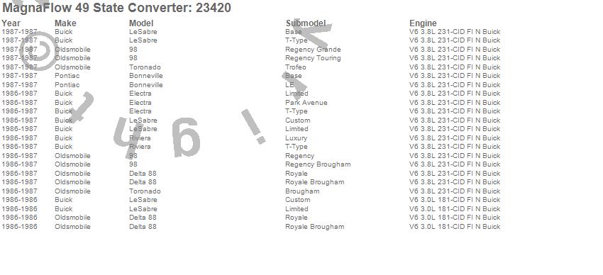 Below is an abreviated list of applications for the Direct Fit Catalytic Converter.