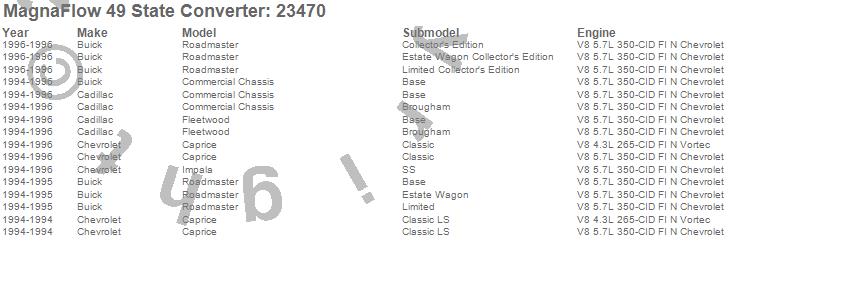 Below is an abreviated list of applications for the Direct Fit Catalytic Converter.
