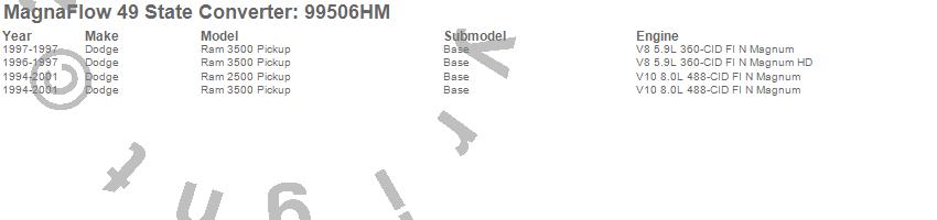 Below is an abreviated list of applications for the Heavy Metal Series Universal Catalytic Converter.