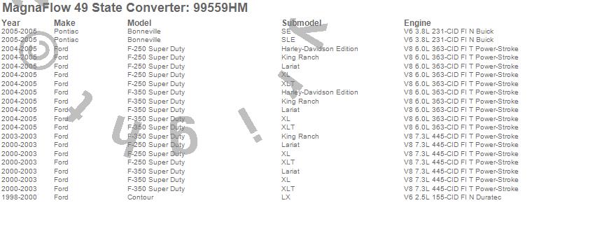 Below is an abreviated list of applications for the Heavy Metal Series Universal Catalytic Converter.