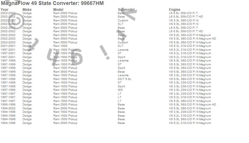 Below is an abreviated list of applications for the Heavy Metal Series Universal Catalytic Converter.