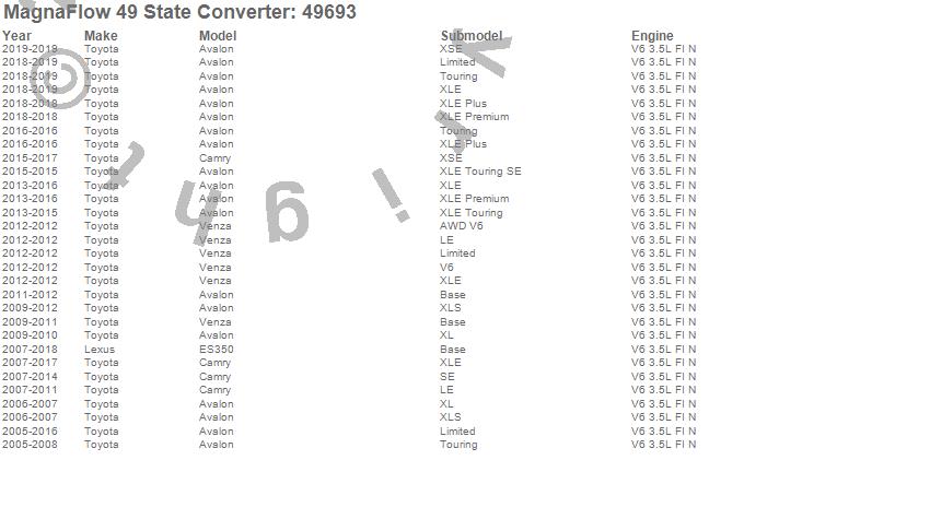 Below is an abreviated list of applications for the Direct Fit Catalytic Converter.