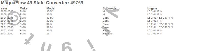 Below is an abreviated list of applications for the Direct Fit Catalytic Converter.