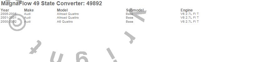 Below is an abreviated list of applications for the Direct Fit Catalytic Converter.