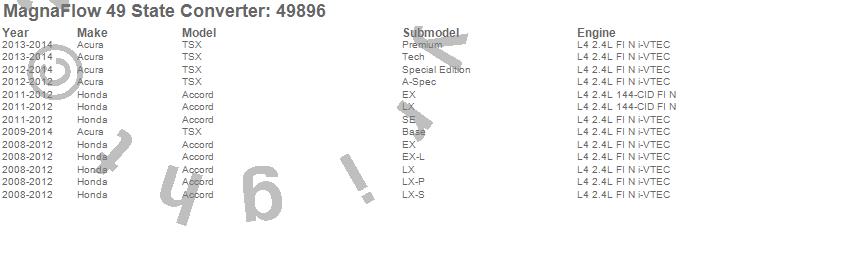 Below is an abreviated list of applications for the Direct Fit Catalytic Converter.
