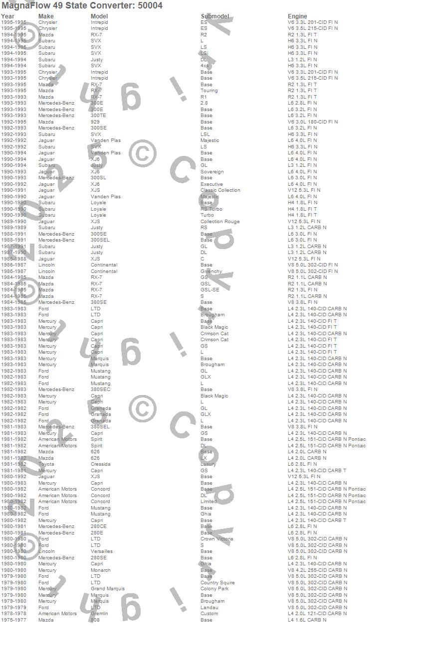 MagnaFlow 49 State Converter 50000 Series Pre-Converter 50004 Features:
