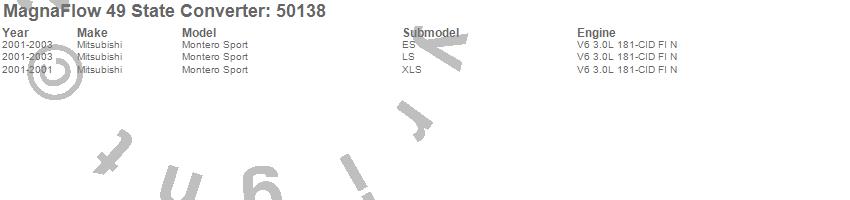 Below is an abreviated list of applications for the Direct Fit Catalytic Converter.