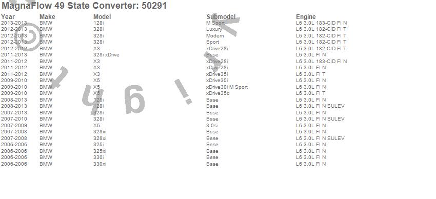 Below is an abreviated list of applications for the Direct Fit Catalytic Converter.
