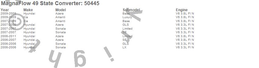 Below is an abreviated list of applications for the Direct Fit Catalytic Converter.