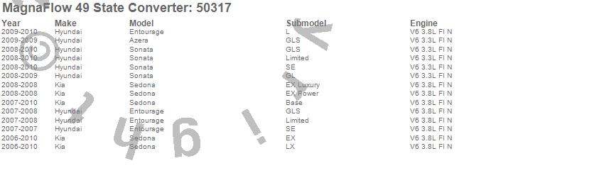 Below is an abreviated list of applications for the Direct Fit Catalytic Converter.