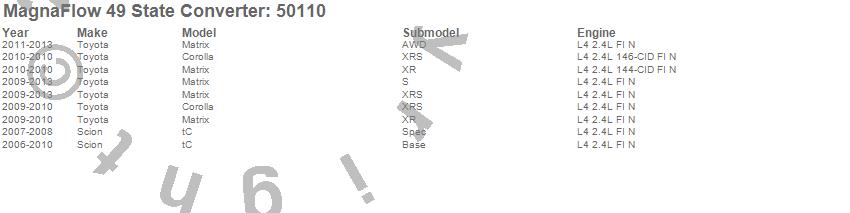 Below is an abreviated list of applications for the Direct Fit Catalytic Converter.