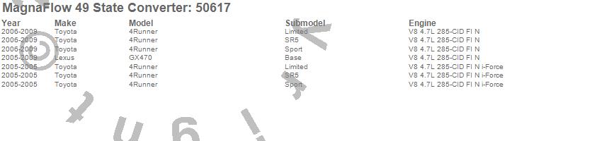 Below is an abreviated list of applications for the Direct Fit Catalytic Converter.