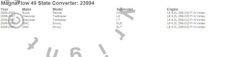 Below is an abreviated list of applications for the Direct Fit Catalytic Converter.