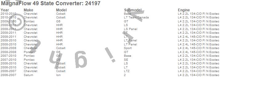 Below is an abreviated list of applications for the Direct Fit Catalytic Converter.