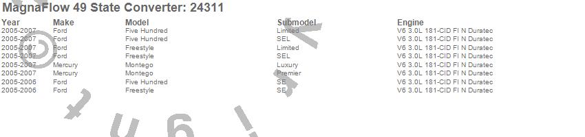 Below is an abreviated list of applications for the Direct Fit Catalytic Converter.