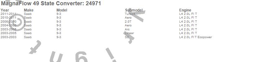 Below is an abreviated list of applications for the Direct Fit Catalytic Converter.