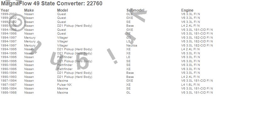 Below is an abreviated list of applications for the Direct Fit Catalytic Converter.