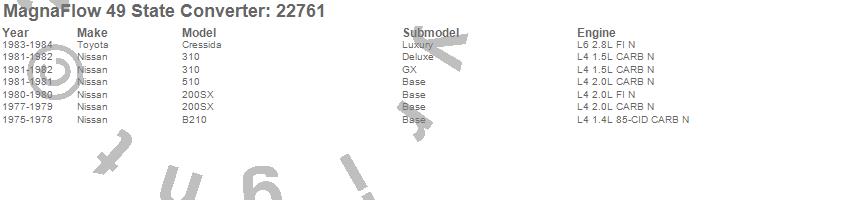 Below is an abreviated list of applications for the Direct Fit Catalytic Converter.
