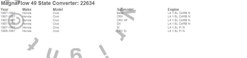 Below is an abreviated list of applications for the Direct Fit Catalytic Converter.