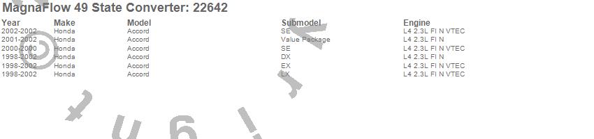 Below is an abreviated list of applications for the Direct Fit Catalytic Converter.