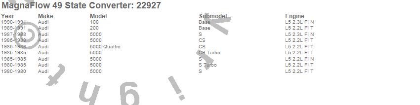 Below is an abreviated list of applications for the Direct Fit Catalytic Converter.