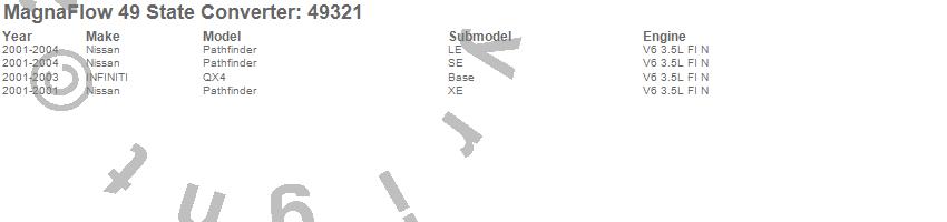 Below is an abreviated list of applications for the Direct Fit Catalytic Converter.