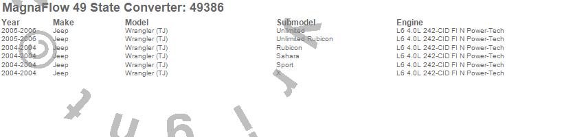 Below is an abreviated list of applications for the Direct Fit Catalytic Converter.
