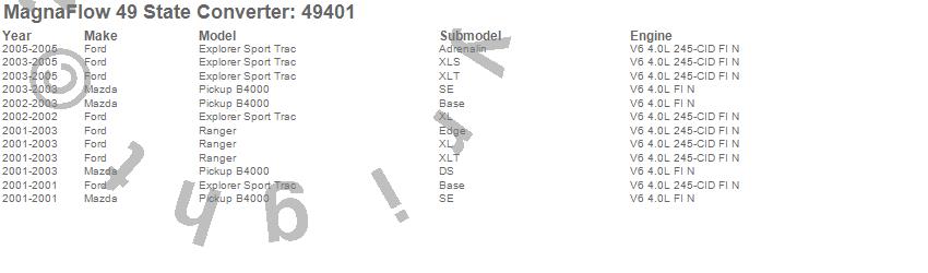 Below is an abreviated list of applications for the Direct Fit Catalytic Converter.