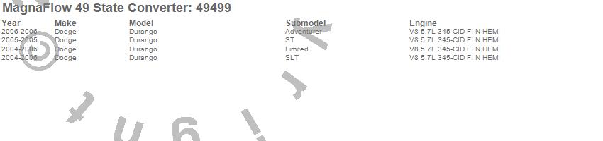Below is an abreviated list of applications for the Direct Fit Catalytic Converter.