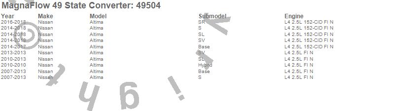 Below is an abreviated list of applications for the Direct Fit Catalytic Converter.