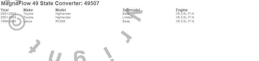 Below is an abreviated list of applications for the Direct Fit Catalytic Converter.