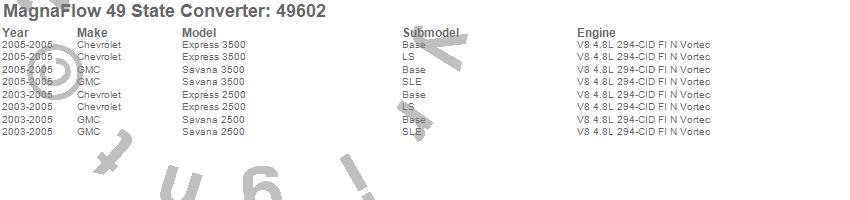 Below is an abreviated list of applications for the Direct Fit Catalytic Converter.
